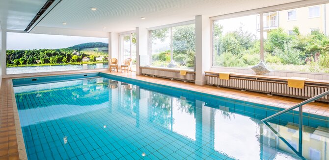 Das Hallenbad lädt mit angenehmen 29° Grad zum Baden und Bewegen ein.